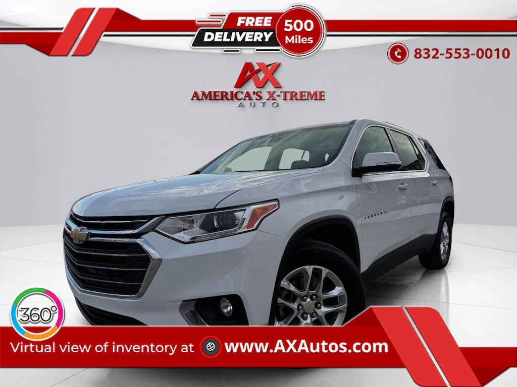 WHAT IS A BRANDED TITLE? https://www.youtube.com/watch?v=djssRiZ0q_s We Can Finance! We Take Trade IN-S! CALL US AT 832-553-0010 Car comes with 2 month/ 2,400 mile warranty from our dealership The vehicle will come with a rebuilt title due to previous fresh water damage. Vehicle was purchased from an Insurance Auction and some vehicles got claimed even though they had no damage to the vehicle this is one of them we had trained buyers out there finding the perfect car The vehicle has been inspected by the State of Texas and by an authorized dealer and serviced. This vehicle was claimed with thousands of vehicles and the insurance company didn't have time to go through each car and this one is a perfect vehicle. We have many great lenders to get you financed in this vehicle. This car has a Branded Title. Learn why tens of thousands of Americas X-treme Auto customers agree that Branded Titles offer the best value. Call, come in for a test drive, or visit axautos.com today. How has AX Autos become the nations largest dealer of Branded Title vehicles? Its simple, we offer spectacular selection of inventory, unbeatable prices, and a 5-star buying experience. Save thousands without sacrificing quality, afford a newer model year, higher trim level, and lower miles than what you might have been expecting in your price range. What makes us different? We specialize in hand selecting our pre-owned inventory and providing an amazing array of vehicles on our lot here in Houston, TX. We keep about 100+ cars on the lot at any given time and find that being priced aggressively upfront allows us to save time, complete the deal process and keep the best inventory possible. All of our vehicles are priced below market value. We provide a hassle-free buying experience. Call us at 832-553-0010 and let us help you get in this vehicle TODAY. Si Hablamos Espanol All cars at AX Autos go through a 150 point inspection This car qualifies for our 5 year/100,000 mile warranty ask us for details At AX Autos all of our vehicles are meticulously inspected, serviced and certified by our service department. Not only do we offer the lowest pricing in the area, we also offer you the best quality vehicles. Need Financing? Banks compete hard to earn our customers business by aggressively working to get you the lowest possible interest rate available. Get Instant Financing online now with approved credit prior to even stepping foot onto any of our dealerships. Read our Reviews. We are proud to have over thousands of Happy Customers Worldwide! Ship Your Car! Out of area customers now can have vehicles shipped right to their front door! AX Auto Houston is pleased to be currently offering this 2020 Chevrolet Traverse LT Cloth with 55,952mi. Want more room? Want more style? This Chevrolet Traverse LT Cloth is the vehicle for you. It's not often you find just the vehicle you are looking for AND with low mileage. This is your chance to take home a pre-owned and barely driven Chevrolet Traverse. You could keep looking, but why? You've found the perfect vehicle right here. This Summit White Chevrolet is clean and shiny exterior makes it look like it came straight from the factory.