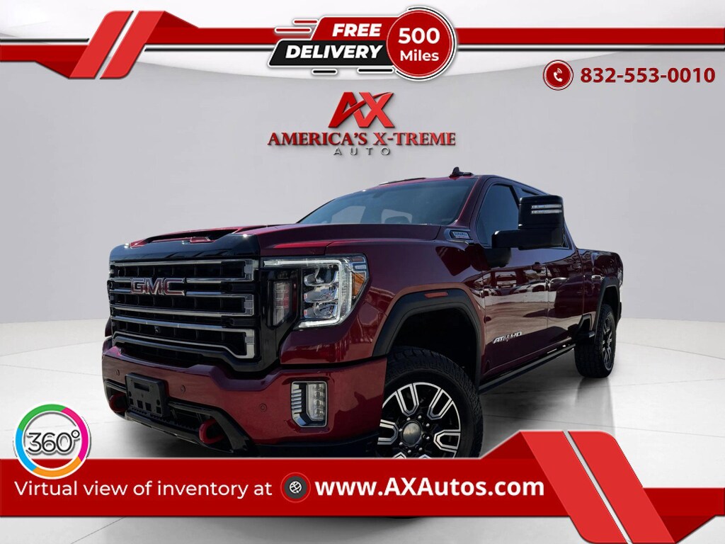 ENG: DURAMAX 6.6L TURBO-DIESEL 9,890.00 AT4 PREFERRED PACKAGE 2,075.00 BED VIEW CAMERA HD SURROUND VISION WITH TWO TRAILER CAMERA PROVISIONS UNIVERSAL HOME REMOTE REAR SLIDING POWER WINDOW GMC PREMIUM INFOTAINMENT SYSTEM WITH NAVIGATION 8 DIAG. HD COLOR TOUCHSCREEN VOICE RECOGNITION BLUETOOTH AUDIO STREAMING WIRELESS APPLE CARPLAY & WIRELESS ANDROID AUTO CAPABLE, IN-VEHICLE APPS AND PERSONALIZATION CAPABLE BOSE PREMIUM SOUND SYSTEM WIRELESS CHARGING LED ROOF MARKER LAMPS POWER RETRACTABLE ASSIST STEPS 1,895.00 WITH LED LIGHTING POWER SUNROOF 995.00 DRIVER ALERT PACKAGE I 890.00 LANE CHANGE ALERT WITH SIDE BLIND ZONE ALERT REAR CROSS TRAFFIC ALERT 20 MACHINED ALUMINUM WHEELS 800.00 W/ HIGH GLOSS BLACK ACCENTS CAYENNE RED TINTCOAT 645.00 GOOSENECK/5TH WHEEL PACKAGE 545.00 Clean Title We Can Finance! We Take Trade IN-S! CALL US AT 832-553-0010 What makes us different? We specialize in hand selecting our pre-owned inventory and providing an amazing array of vehicles on our lot here in Houston, TX. We keep about 100+ cars on the lot at any given time and find that being priced aggressively upfront allows us to save time, complete the deal process and keep the best inventory possible. All of our vehicles are priced below market value. We provide a hassle-free buying experience. Call us at 832 -553-0010 and let us help you get in this vehicle TODAY. Si Hablamos Espanol All cars at AX Autos go through a 150 point inspection This car qualifies for our 5 year/100,000 mile warranty ask us for details At AX Autos all of our vehicles are meticulously inspected, serviced and certified by our service department. Not only do we offer the lowest pricing in the area, we also offer you the best quality vehicles. Need Financing? Banks compete hard to earn our customers business by aggressively working to get you the lowest possible interest rate available. Get Instant Financing online now with approved credit prior to even stepping foot onto any of our dealerships. Read our Reviews. We are proud to have over thousands of Happy Customers Worldwide! Ship Your Car! Out of area customers now can have vehicles shipped right to their front door! Thank you for visiting another one of AX Auto Houston's online listings! Please continue for more information on this 2022 GMC Sierra 2500HD AT4 with 100,370mi. Is it possible to fall in love with a vehicle? It is when your vehicle is as prestige as the GMC Sierra 2500HD. This 4WD-equipped vehicle handles any condition on- or off-road with the sure footedness of a mountain goat. With unequaled traction and stability, you'll drive with confidence in any weather with this Cayenne Red Tintcoat 2022 4WD GMC Sierra 2500HD AT4. The GMC Sierra 2500HD AT4 will provide you with everything you have always wanted in a car -- Quality, Reliability, and Character. You can finally stop searching... You've found the one you've been looking for.
