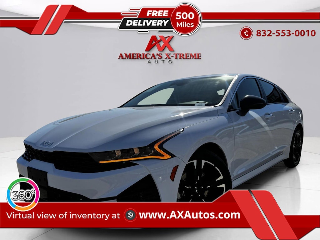 WHAT IS A BRANDED TITLE? https://www.youtube.com/watch?v=djssRiZ0q_s We Can Finance! We Take Trade IN-S! CALL US AT 832-553-0010 Car comes with 2 month/ 2,400 mile warranty from our dealership The vehicle will come with a rebuilt title due to previous water damage. Vehicle was purchased from an Insurance Auction and some vehicles got claimed even though they had no damage to the vehicle this is one of them we had trained buyers out there finding the perfect car The vehicle has been inspected by the State of Texas and by an authorized dealer and serviced. This vehicle was claimed with thousands of vehicles and the insurance company didn't have time to go through each car and this one is a perfect vehicle. We have many great lenders to get you financed in this vehicle. This car has a Branded Title. Learn why tens of thousands of Americas X-treme Auto customers agree that Branded Titles offer the best value. Call, come in for a test drive, or visit axautos.com today. How has AX Autos become the nations largest dealer of Branded Title vehicles? Its simple, we offer spectacular selection of inventory, unbeatable prices, and a 5-star buying experience. Save thousands without sacrificing quality, afford a newer model year, higher trim level, and lower miles than what you might have been expecting in your price range. What makes us different? We specialize in hand selecting our pre-owned inventory and providing an amazing array of vehicles on our lot here in Houston, TX. We keep about 100+ cars on the lot at any given time and find that being priced aggressively upfront allows us to save time, complete the deal process and keep the best inventory possible. All of our vehicles are priced below market value. We provide a hassle-free buying experience. Call us at 832-553-0010 and let us help you get in this vehicle TODAY. Si Hablamos Espanol All cars at AX Autos go through a 150 point inspection This car qualifies for our 5 year/100,000 mile warranty ask us for details At AX Autos all of our vehicles are meticulously inspected, serviced and certified by our service department. Not only do we offer the lowest pricing in the area, we also offer you the best quality vehicles. Need Financing? Banks compete hard to earn our customers business by aggressively working to get you the lowest possible interest rate available. Get Instant Financing online now with approved credit prior to even stepping foot onto any of our dealerships. Read our Reviews. We are proud to have over thousands of Happy Customers Worldwide! Ship Your Car! Out of area customers now can have vehicles shipped right to their front door! This 2023 Kia K5 GT-Line is offered to you for sale by AX Auto Houston. This wonderfully fuel-efficient vehicle offers a supple ride, quick acceleration and superior styling without sacrificing MPGs. The Kia K5 GT-Line will provide you with everything you have always wanted in a car -- Quality, Reliability, and Character. There is no reason why you shouldn't buy this Kia K5 GT-Line. It is incomparable for the price and quality. This is about the time when you're saying it is too good to be true, and let us be the one's to tell you, it is absolutely true.